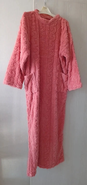 This thick coral fleece nightgown traps body heat so you step out of bed warm. No more shivering while making coffee or checking the mail; feel instantly comfortable and ready.