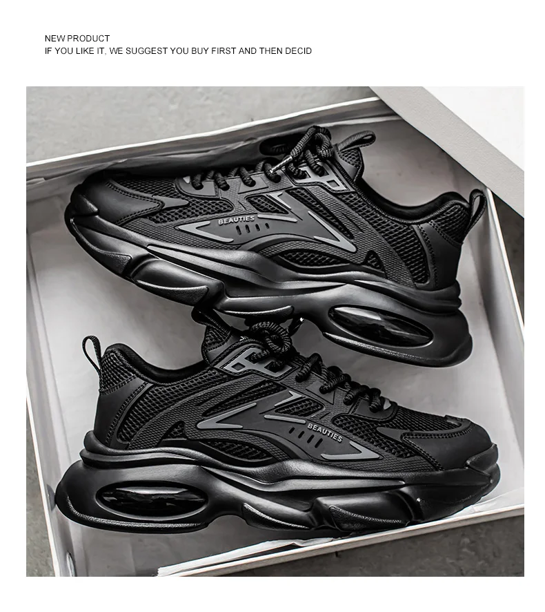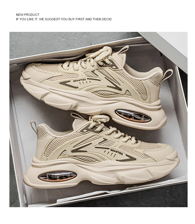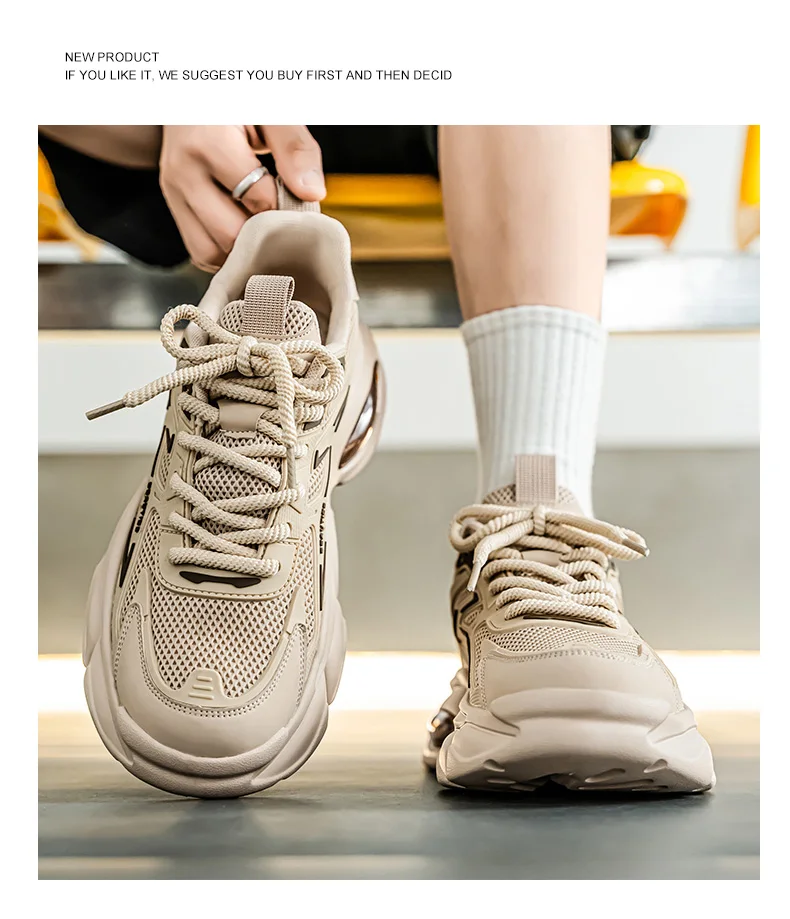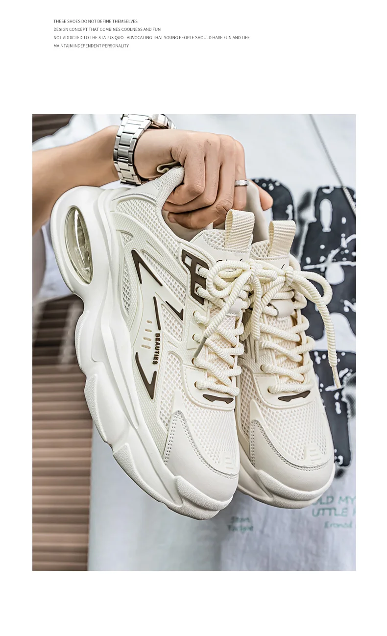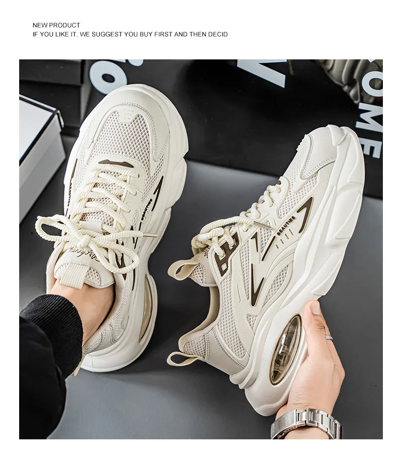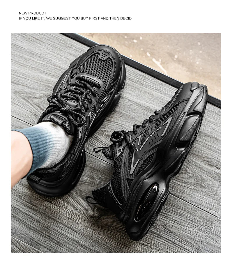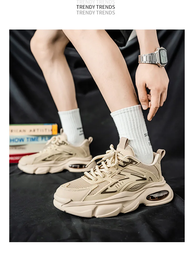 Men's Low-Top Sneakers for Autumn 2025 - Breathable Mesh, Slip-Resistant Thick-Sole Running Shoes, Trendy Outdoor Casual Shoes‌