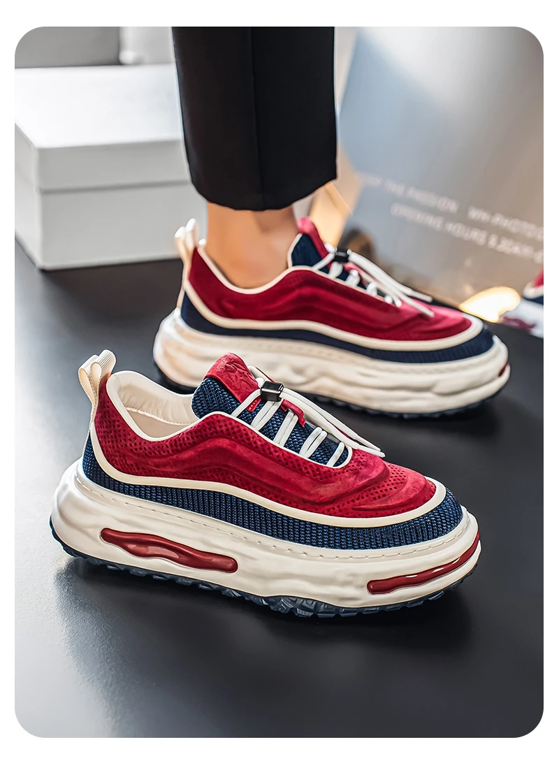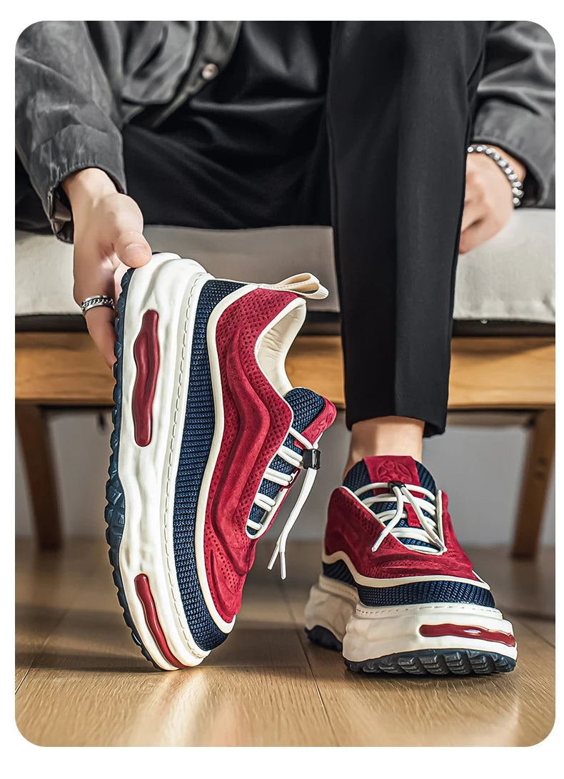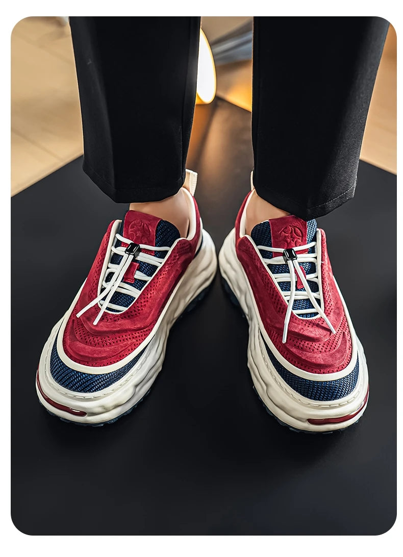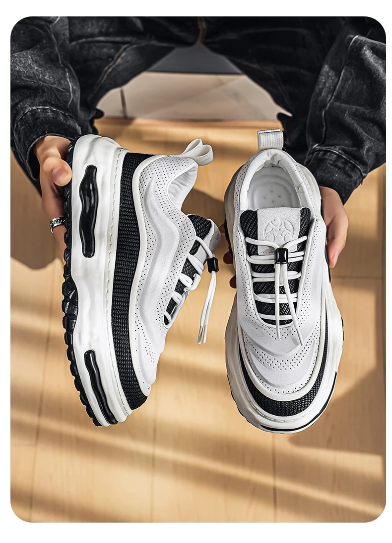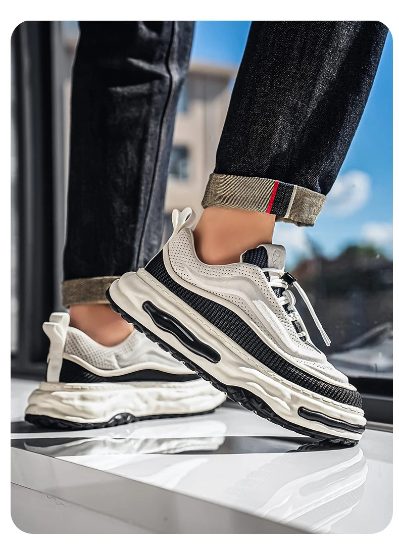Men's Shoe Breathable Leather Casual Shoes Thick Soled Casual Sneakers Outdoor Running Sneakers Tennis Soft Soles Male Sneakers